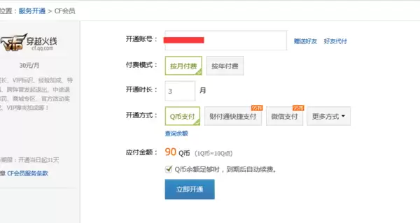 首先访问腾讯充值中心官网:http://pay.qq.com/,登录您的个人账号。进入服务开通页面后,选择CF会员服务。在开通界面中,根据需求选择会员时长和支付方式,完成支付流程即可。支付成功后,CF会员服务将立即生效。