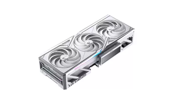 与黑色版最大区别在于Vulcan W采用了3+1风镰扇叶设计,除了正面三把107mm风扇外,背板还额外配备了一颗107mm反叶风扇,同样可一键超频至2017MHz-2527MHz。