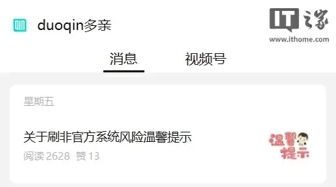 8 月 18 日消息,防沉迷手机厂商多亲 8 月 15 日发布《关于刷非官方系统风险温馨提示》,附全文如下: