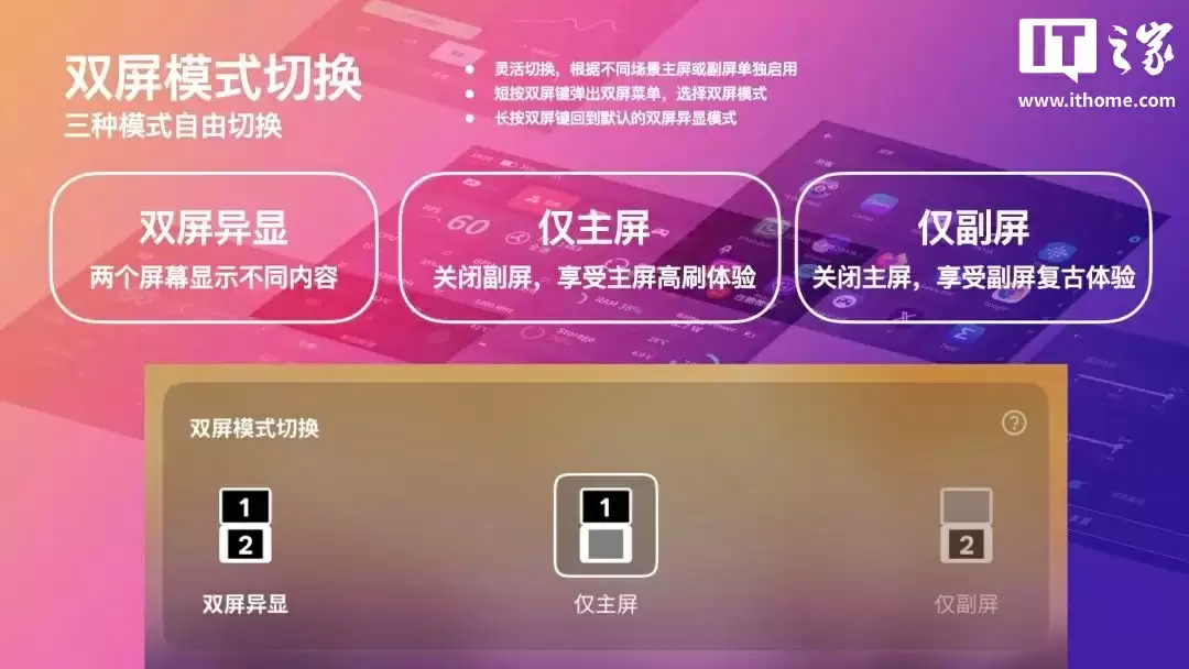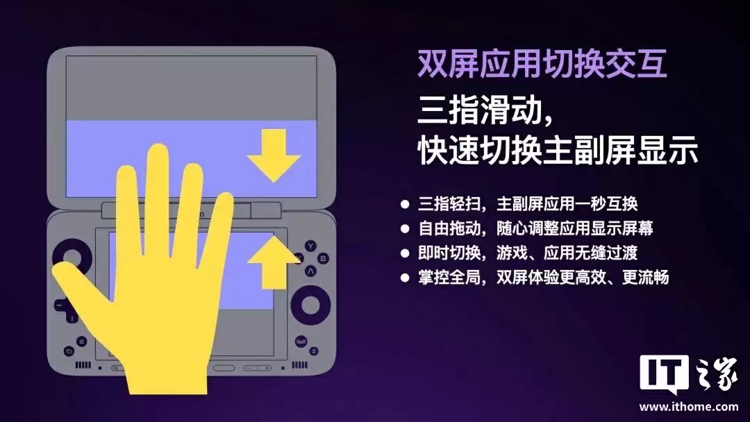在交互方面,Pocket DS 引入三指滑动手势,支持主副屏内容一秒互换,可自由拖动和位置优先级调整,确保游戏与应用在切换时流畅无阻。仅主屏模式下,玩家可关闭副屏专注于高刷游戏体验,同时节约功耗并延长续航;而仅副屏模式则带来纯粹的复古游戏乐趣,后续还将加入支持手势操作的原生副屏模式。