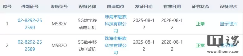 记者查询工信部入网信息发现,魅族近期有两款5G新机(型号分别为M582V和M582Q)于8月12日通过认证。结合@数码闲聊站的爆料,M582Q很可能是魅族22的小屏版本,该机型目前已完成三证备案,内置单电芯电池,标称容量5370mAh(典型值约为5500mAh)。