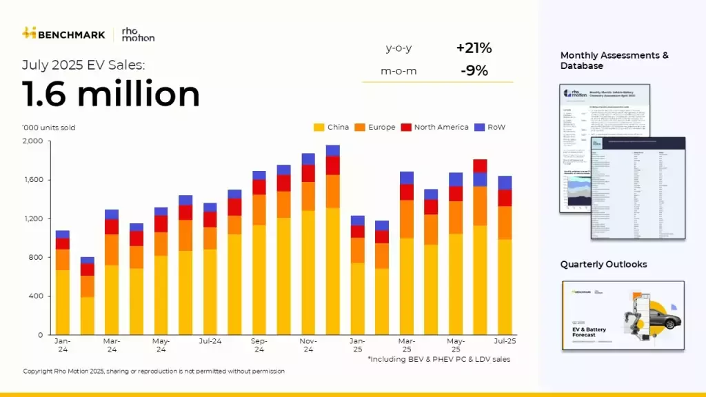 2025年7月全球电动车销量破千万,中国市场贡献650万辆