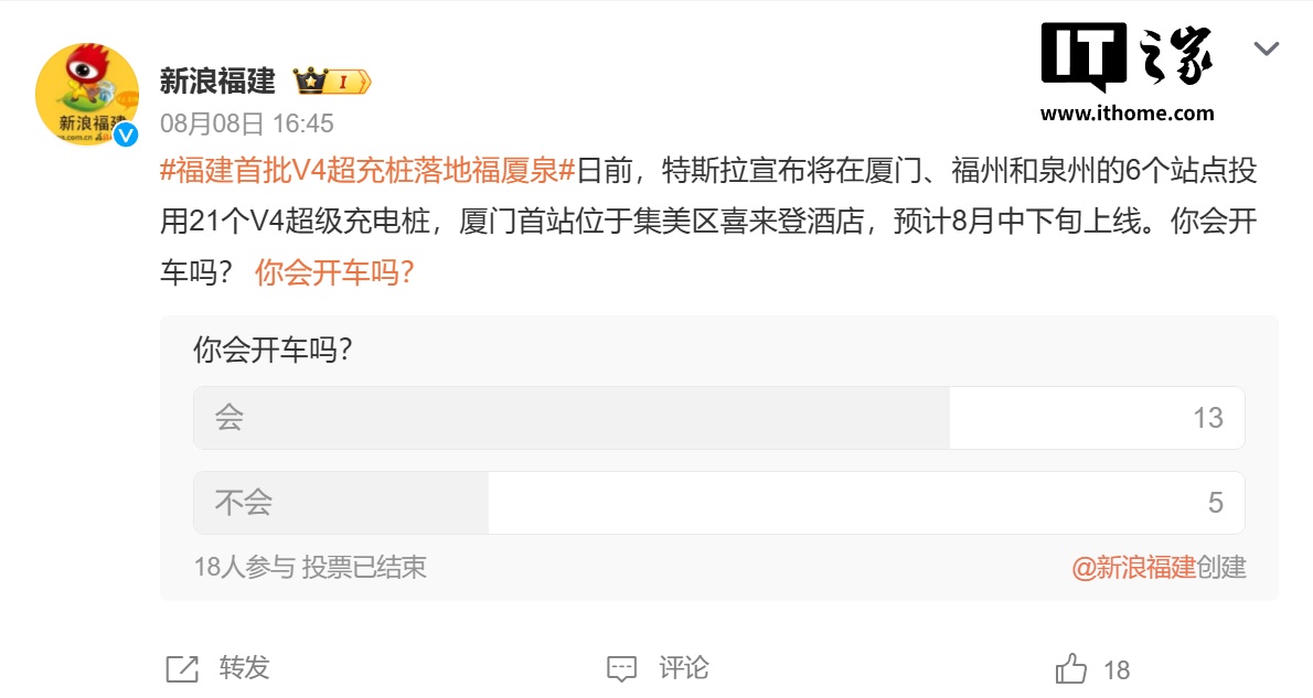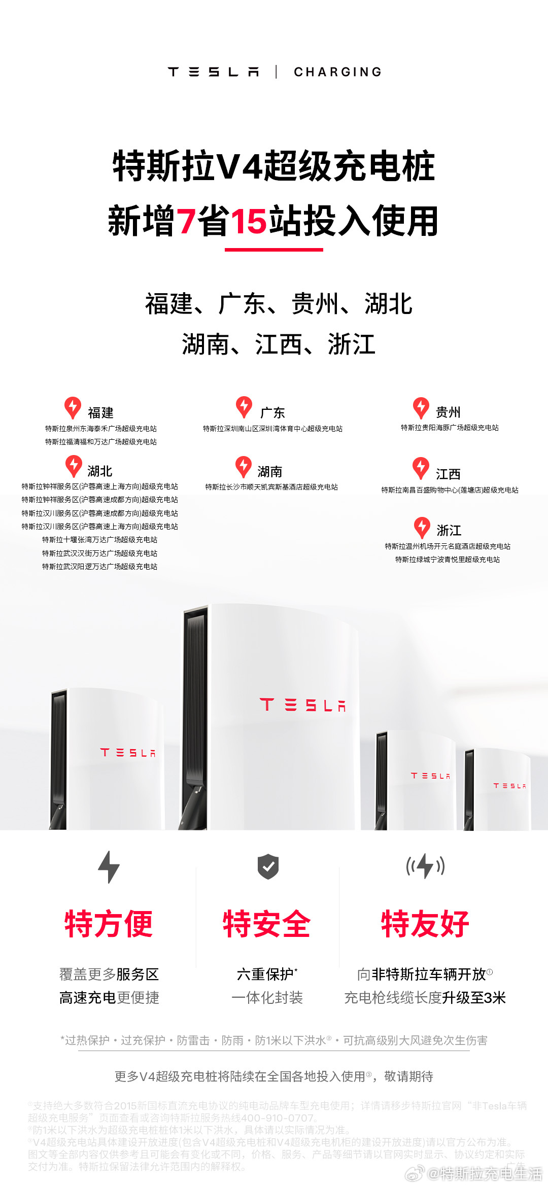 8 月 18 日消息,特斯拉昨天宣布其福建省首批 V4 超级充电站即将上线。