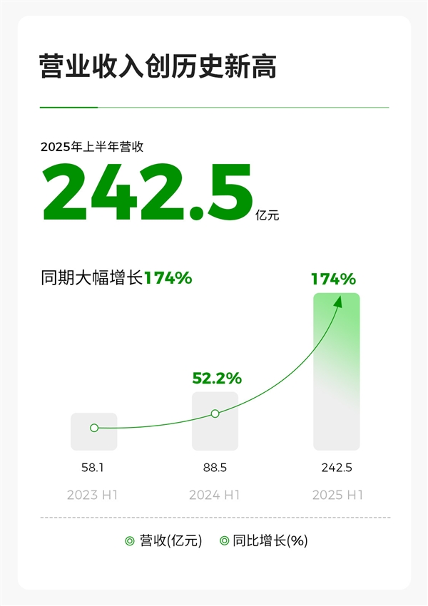 2025年上半年,零跑汽车收入为242.5亿元,同比增长174.0%。