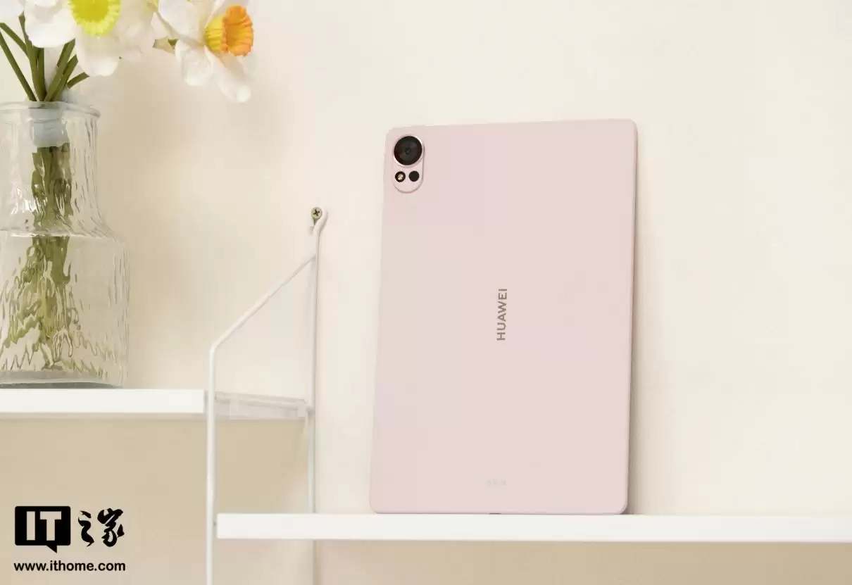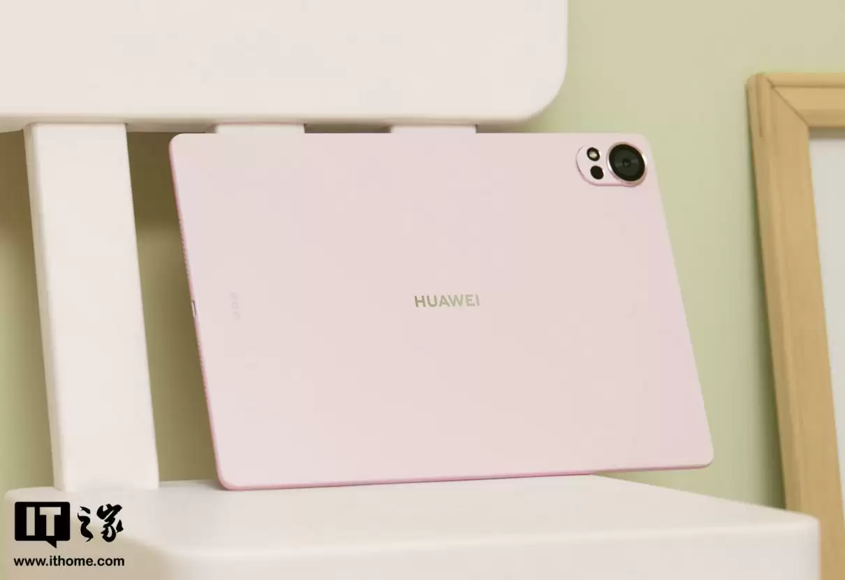 值得一提的是,华为 MatePad Air 2025 款的草木绿、樱语粉、羽砂白、烟云灰四款配色机身均使用天然云母粉,光线角度不同,会呈现随角异色的幻彩光影。其中,草木绿、樱语粉、羽砂白还采用了幻彩珠光工艺,打造出马卡龙奶油质感的纯净色彩,温润细腻。无论日常使用还是展示,机身手感都舒适,格调独特。