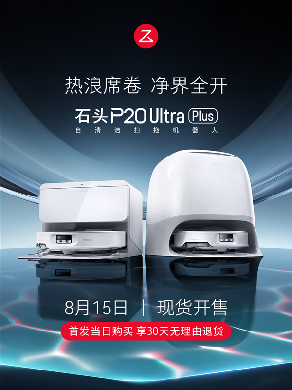 石头P20 Ultra Plus发布:100℃高温洗拖布,三重热力深度清洁