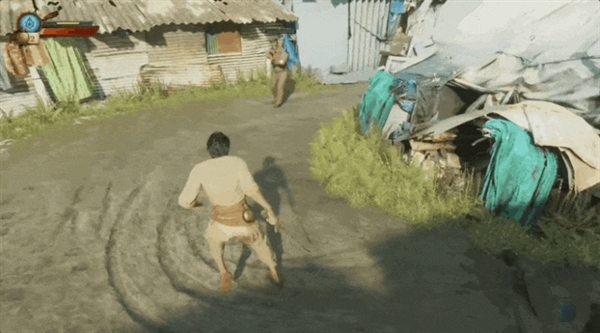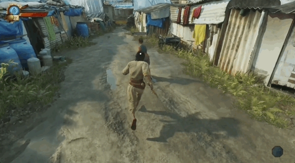 画面一转,我们来到了现代的印度贫民窟,开发团队还挺客观,基本上把真实印度小镇给照搬到屏幕上,连街边的垃圾都没放过,