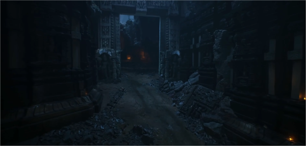开头的四秒钟,一个古印度风格的大门矗立在画面中心。周围有几盏昏暗的灯火,没有照亮四周,却让人感觉更加的 deep dark fantasy。