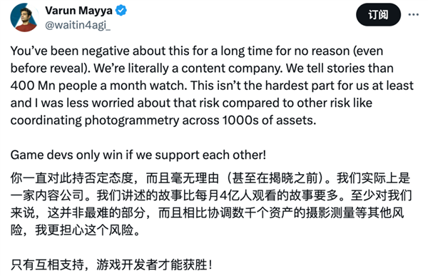 别人奉劝他少关注画面和印度主角,多关心一下游戏的玩法,Mayya 破防到语无伦次,说他的团队本身就擅长内容,而画面资产才是他们最担忧的风险。