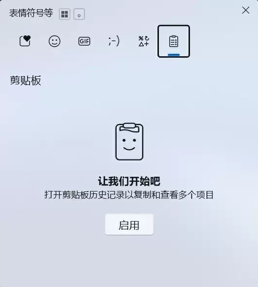 所以,使用剪贴板功能之前,一定要先按下Windows+V,并手动点击“启用”,激活剪贴板功能。