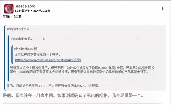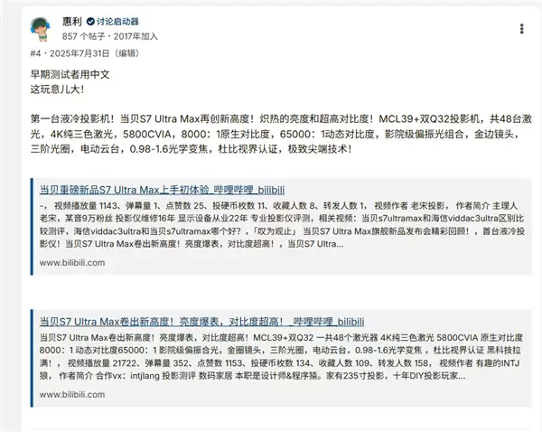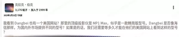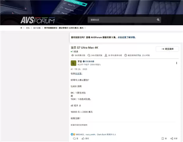 在全球顶级投影论坛 AVS 上,其话题阅读量超 20K、互动近 300 条,外国网友自发发起团购、计划跨国购买的讨论,让这款定价 15999 元的国产高端投影成为焦点。