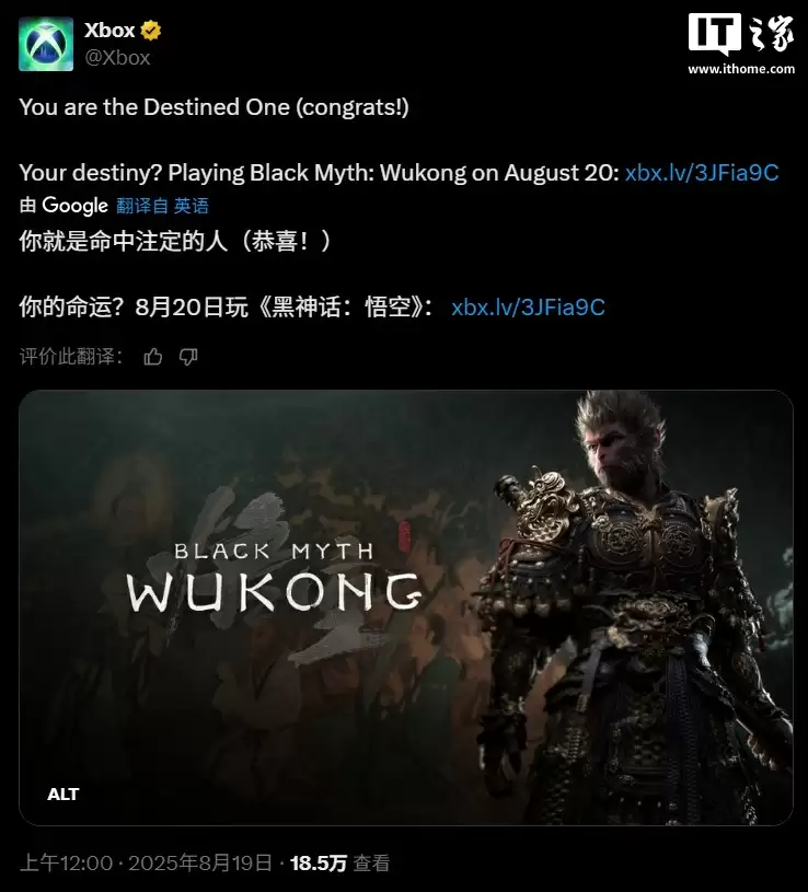 《黑神话:悟空》Xbox版8月20日发售,现已开放预下载