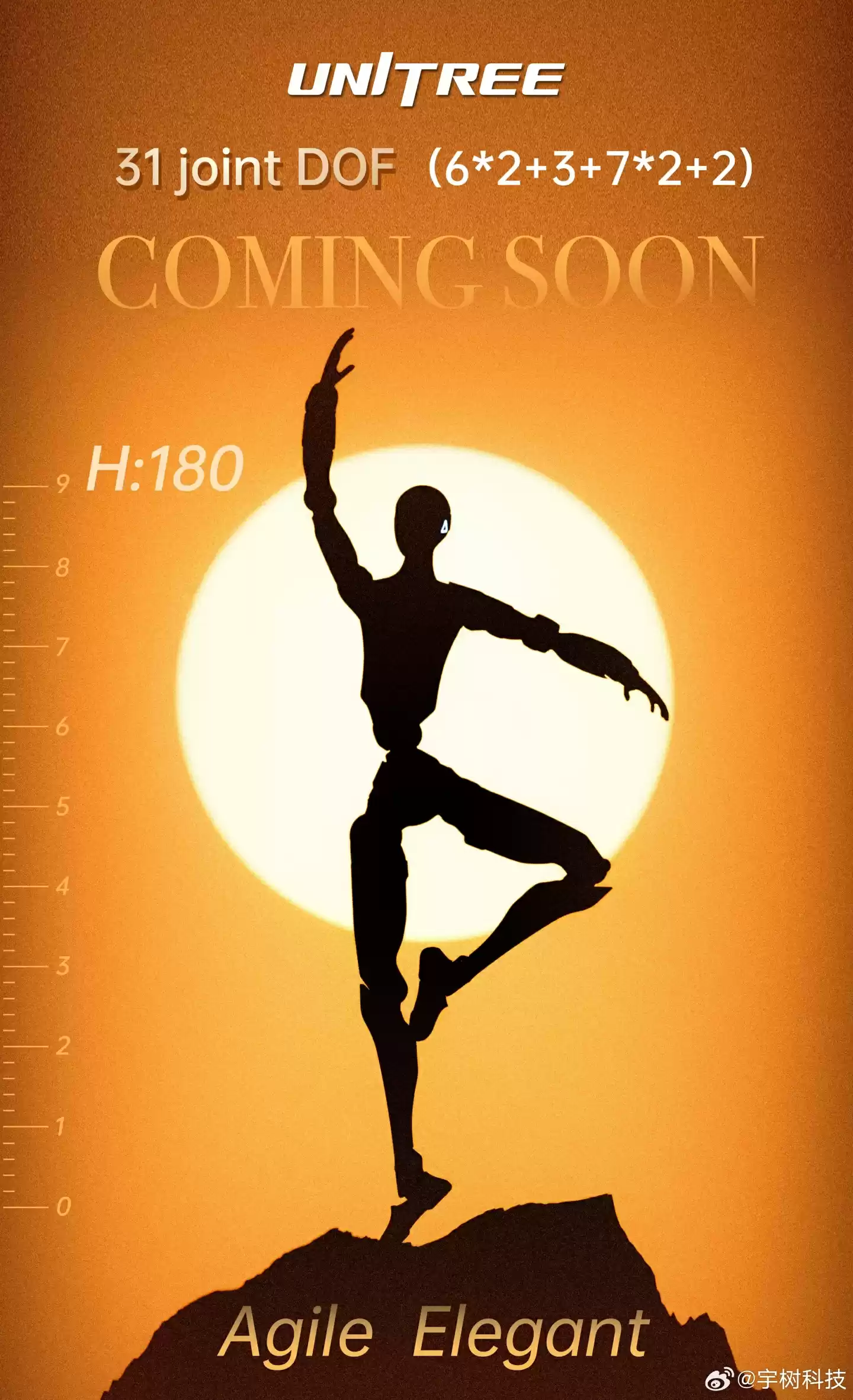8月19日最新消息,宇树科技于今晚公布了一款180厘米高的人形机器人新品预告海报,并在官方文案中标注"即将亮相"字样。