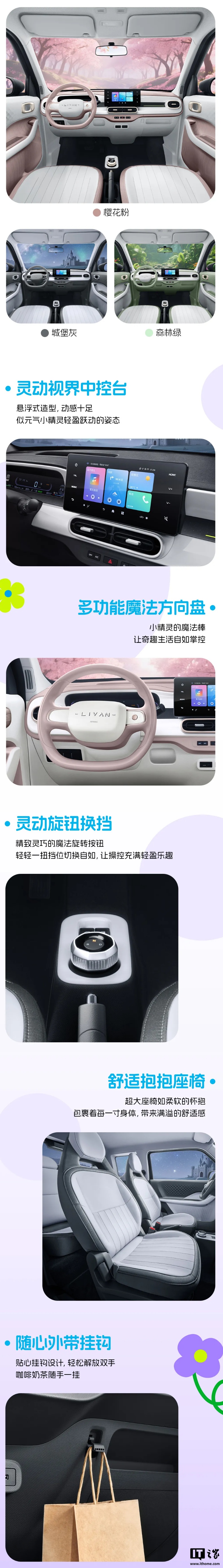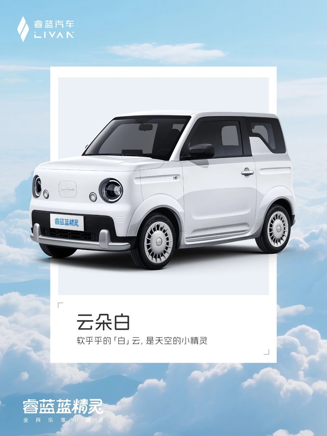 外观方面,新车以“元气小精灵”为设计理念,采用方盒子造型 + 圆润灯组及流畅线条,提供大海蓝、蜜桃粉、小草绿、云朵白四种配色。