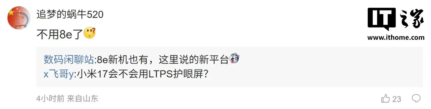”,博主回复道:“8e 新机也有,这里说的新平台