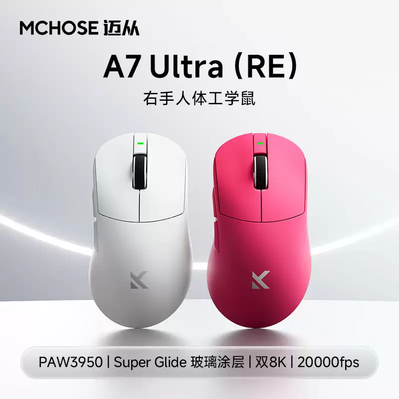 8月19日消息,迈从MCHOSE于本月15日推出专为中大手型玩家设计的右手人体工学鼠标A7 Ultra (RE)。这款鼠标配备原相PAW3950传感器,支持三模双8KHz回报率连接,官方售价359元。