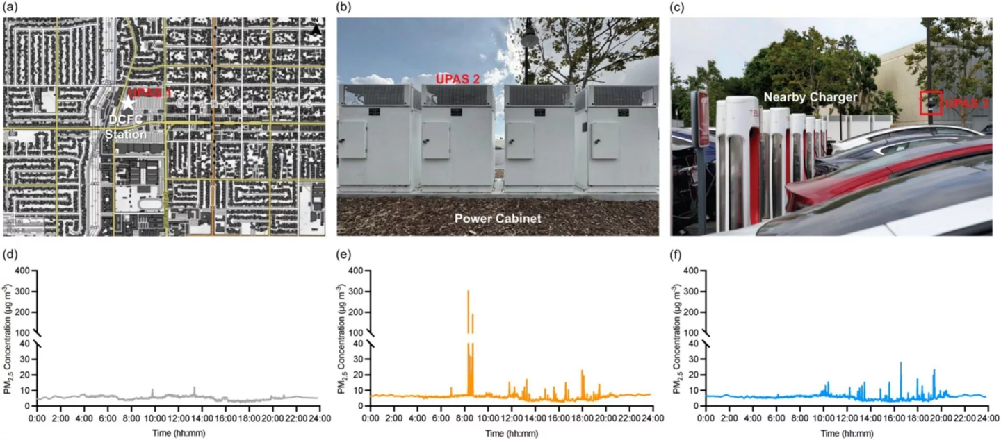 加州大学洛杉矶分校的研究员姚元(Yuan Yao,音译)博士表示:“我们的研究结果表明,这些微小颗粒很可能是由于直流快速充电站配电柜周围的颗粒物重新悬浮而产生的。”她解释说,配电柜的作用是将电网中的电能转换为电动汽车所需的直流电,同时柜内还装有风扇以防止过热。这些风扇可能会搅动灰尘和颗粒物,从而使充电站周围的空气变得“污浊”。