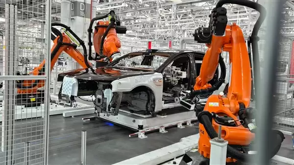这座工厂配备超过1800台智能机器人,实现冲焊涂总全面自动化与数字化,并支持智能柔性定制。