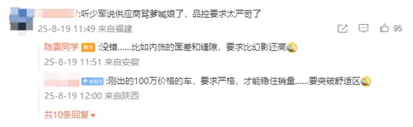 而在评论区,有网友询问称:听少军(注:另一博主)说供应商骂爹喊娘了,品控要求太严苛了。