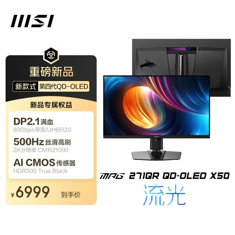 京东微星 MPG 271QR QD-OLED X50 显示器 8 月 26 日 00:00 开售 6999 元直达链接