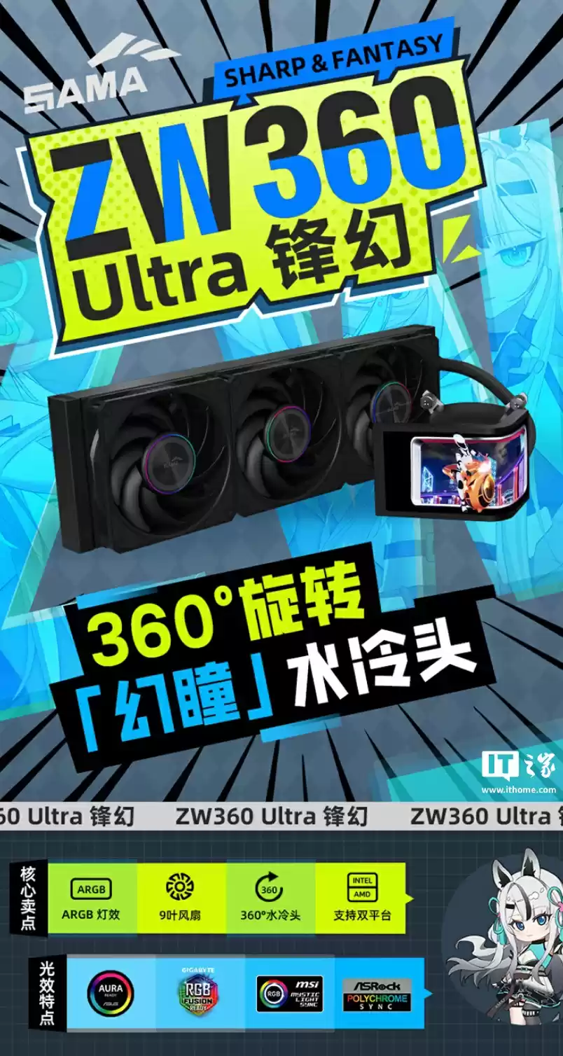 先马ZW360 Ultra锋幻水冷首发:可旋转OLED曲屏冷头,售1599元