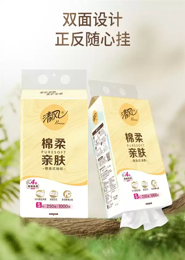 清风悬挂式抽纸24.9元10提:棉柔亲肤,墙上抽取更便捷