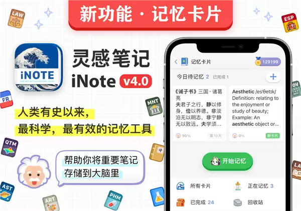 iNote·灵感笔记4.0发布:苹果官方推荐,新增智能记忆卡片功能
