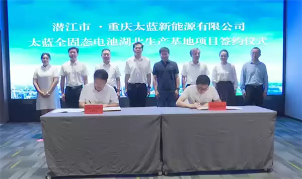 8月20日消息,8月18日,太蓝新能源全固态电池湖北生产基地项目在武汉成功签约。