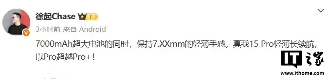 徐起此前还表示,真我15系列将不再推出Pro+版本,转而“集中资源打造豪华版Pro,在性能、影像与续航三大核心领域实现全面提升,以Pro级定位超越传统Pro+水准”。值得一提的是,**新机在配备7000mAh超大容量电池的基础上,仍将保持7.XX毫米的纤薄机身**,真我15 Pro主打“轻薄长续航,以Pro实力超越Pro+定位”。