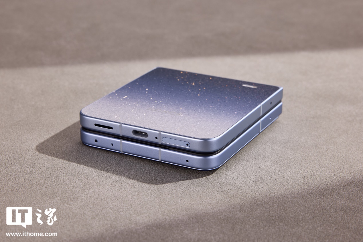 虽然看着 Bling Bling,但外壳表面的质感却非常光滑,无论是后壳、铰链还是中框部分,手感都处理得高度一致,握持时的手感连贯统一,凸显出做工和质感的精致高级。