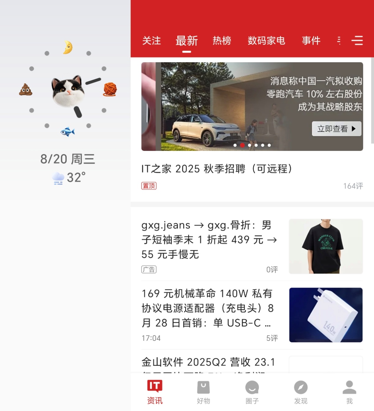 设定萌宠主题后,打开应用左侧显示的时间也会变成对应宠物形象的萌宠时钟,个性化无处不在。
