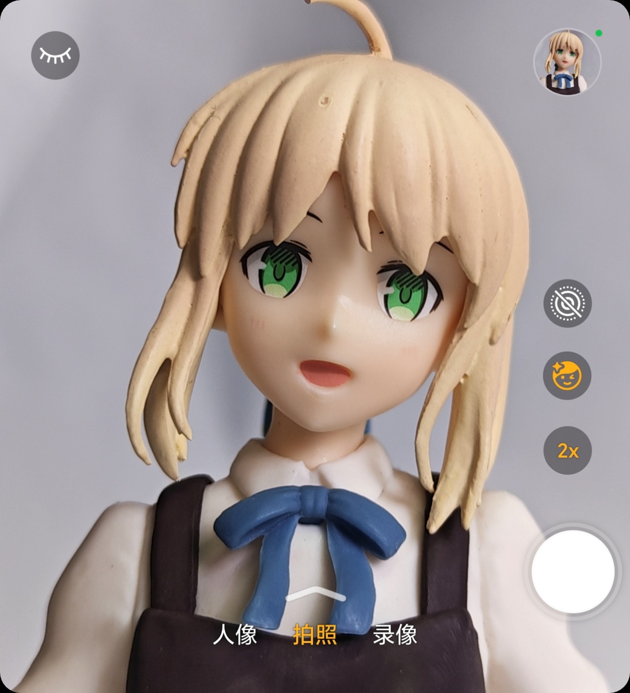 界面右侧罗列了不同拍摄模式下支持的一些快捷功能,上图的常规拍摄模式中支持 Live 图开关、自动美颜、变焦切换按钮,在下面是快门键,最下方还有不同拍摄模式的切换选项。重点要提的是上代诟病的视频拍摄无法切换变焦,改为了每种模式下都支持,其中拍照和录像模式支持 0.5x、1x 和 2x 变焦,人像模式在此基础上还额外支持 3x 变焦。