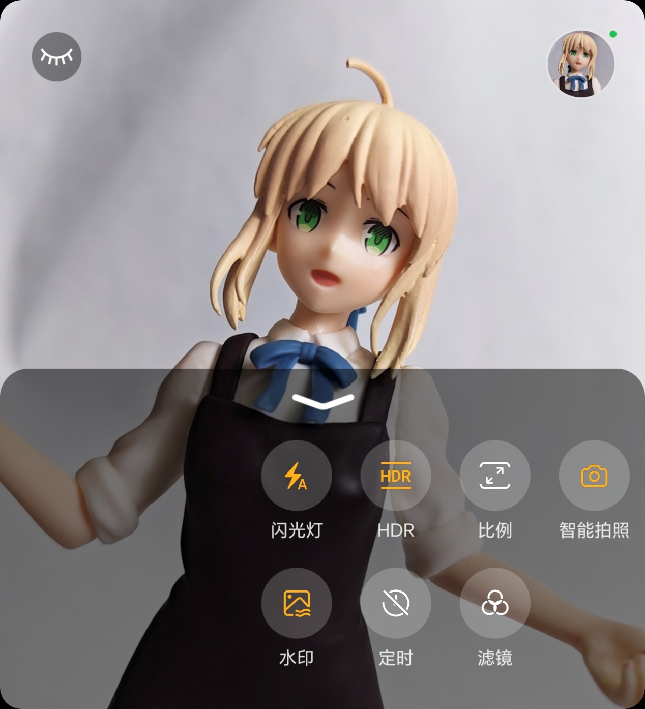 左上角还有一键隐藏选项菜单按钮,方便用户更好取景,隐藏后效果如上图所示。