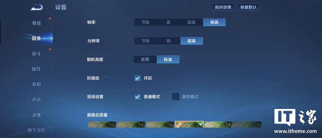 不过,由于小折叠品类的定位和形态,比起极致的性能发挥,厂商更看重散热、温控和能耗续航,因此实际性能我们用《王者荣耀》这款主流手游来简单评估一下。进入游戏后将画面质量设置为高清、分辨率和帧率均拉到最高。