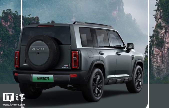 新车提供揽月白、水墨江南灰、玄夜黑、云涧灰、薄荷绿车漆,整体延续“方盒子”外观设计,前脸换用与燃油版相同的方形头灯组,车身匹配传统造型门把手;车尾标识由现款的“HAVAL”改为“GWM”,尾灯同步换用全新设计。