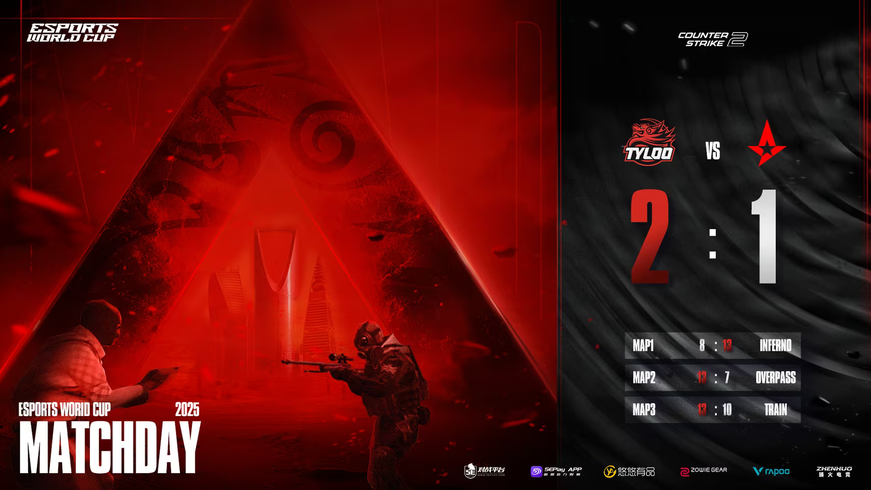 8 月 21 日消息,2025 年电竞世界杯(EWC)《反恐精英 2》项目十六强比赛中,中国战队 TYLOO(天禄)以 2:1 的比分,逆转取胜丹麦的传统强队 Astralis(A 队),成功晋级八强。