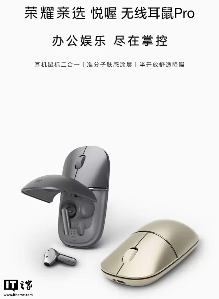 荣耀亲选悦喔Pro无线耳鼠二合一开售:半开放降噪+鼠标功能,首发价249元