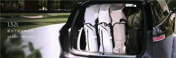 同时,132升的下沉储物空间便于分类存放物品,下层储物空间的隔板立起,还能够竖着放下三套高尔夫球包。