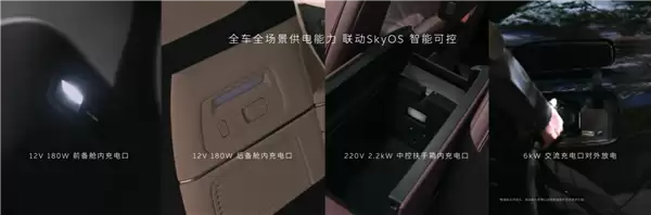 此外,全新ES8全车共有41处储物空间,车内支持全场景供电能力,前后备箱都有12V供电能力,中控扶手箱内配有220V插座,标配充放一体的交流口,支持最高6kW对外放电。