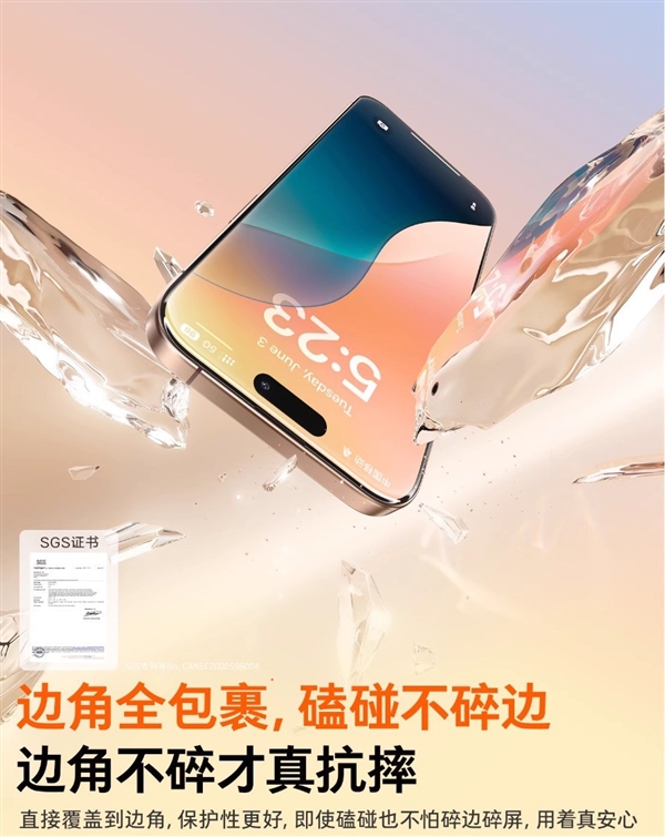 抗摔膜是专门针对“屏幕防碎”设计的品类,核心优势在于“强抗摔性能”。它在传统钢化膜的基础上做了结构升级,常见的有“双层玻璃+中间缓冲胶层”“边缘气囊防护”“柔性玻璃基材”三种设计:缓冲胶层能在手机跌落时吸收冲击力,避免应力集中导致屏幕碎裂。