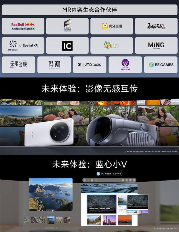 在生态体验方面,vivo Vision探索版独家推出《桌鼓达人》和《小V的旅行》两款MR休闲娱乐内容,带来虚实融合的娱乐体验,还支持无线连接。