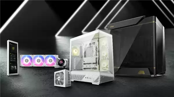 在机箱产品线方面,微星带来了MEG MAESTRO 900系列和MAG PANO 130R PZ两款新品。旗舰级MEG MAESTRO 900系列创新性地采用了四向主板托盘设计,配备可扩展I/O面板并支持定制液冷系统。