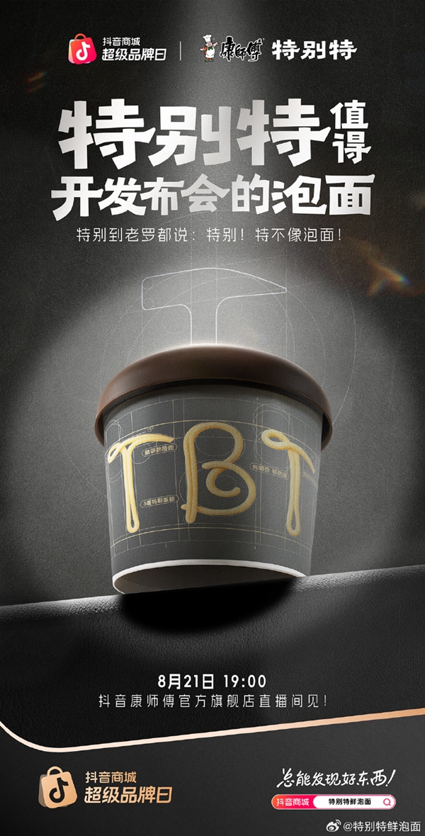 他表示,“如此特别的泡面,当然值得一场发布会!今晚19:00,我们抖音康师傅官方旗舰店直播间见!”