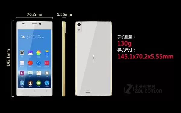 2014年2月发布的金立Elife S5.5,机身厚度5.55mm,刷新了当时智能手机厚度的记录。该机搭载了联发科MT6592芯片,2300mAh电池。
