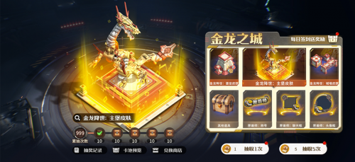 金龙之城:使用主城装扮券即可抽取 “金龙降世” 主堡 / 堡垒皮肤等限定奖励,让机甲风主城成为战场上的最佳风景线,助力每一个 “从收藏到实战” 的梦想。