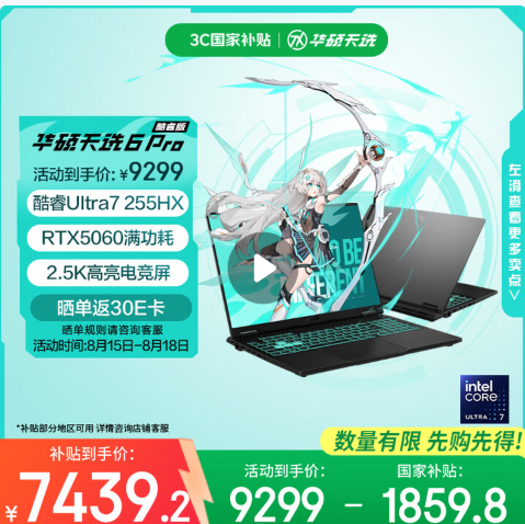 性价比突出:目前叠加国补与优惠券后,到手价仅 7439.2元,相比同配置竞品便宜 1000-1500 元,预算 7000-9000 元的玩家无需 “为帧率多花钱”。