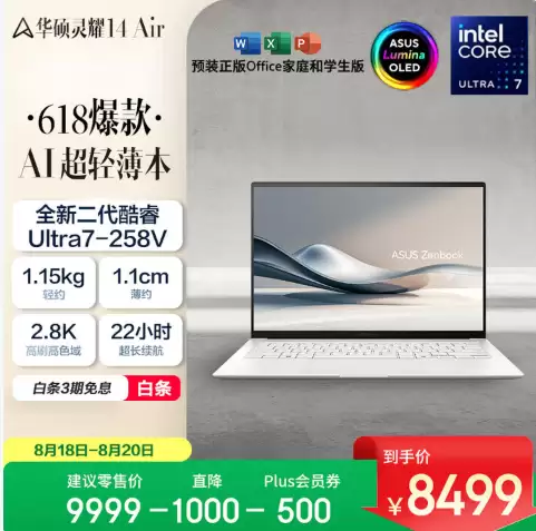 追求极致便携与精致体验,选华硕灵耀 14 Air U7-258V,为移动办公注入美学基因;
