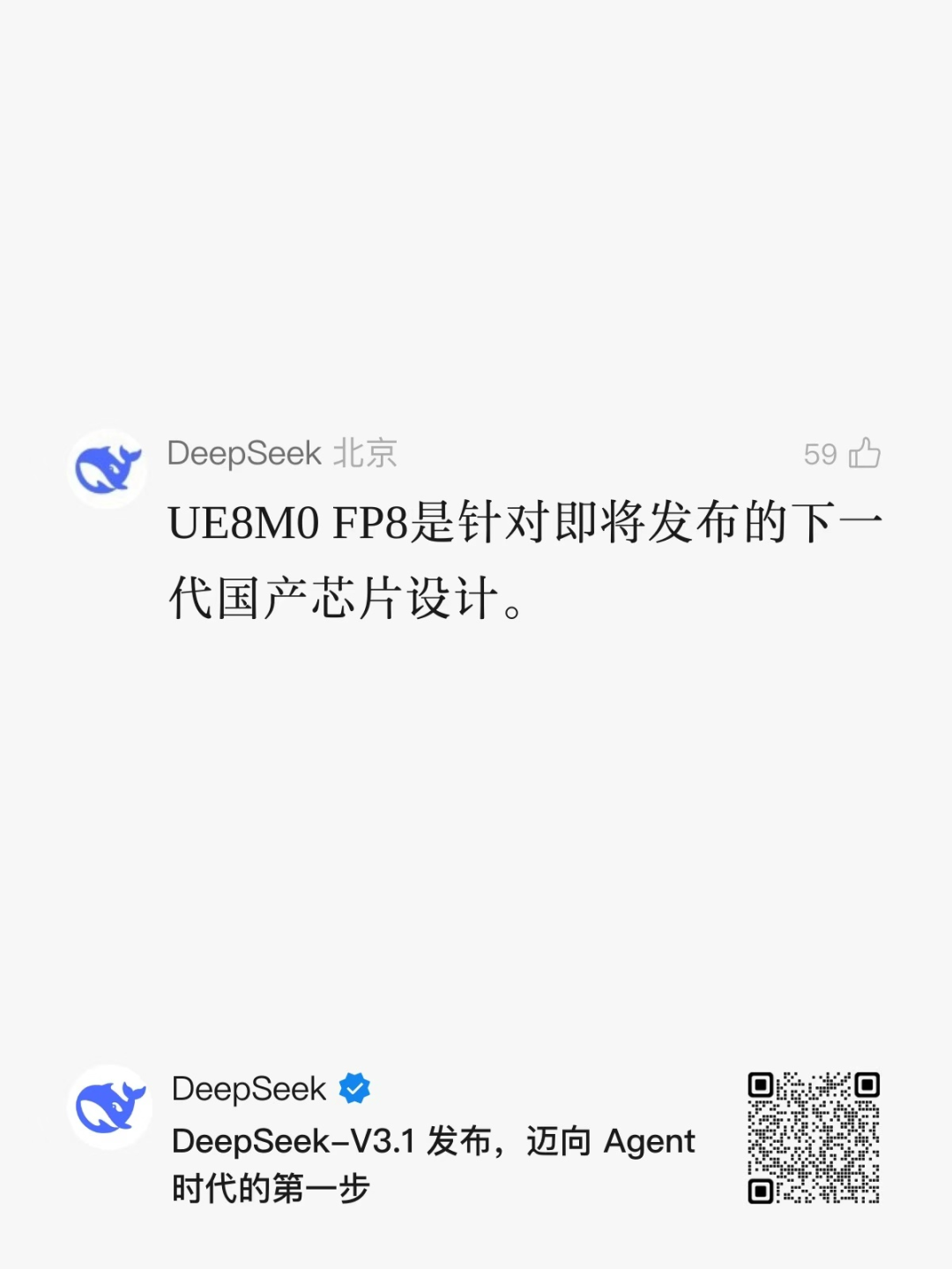 另外,DeepSeek官微在置顶留言里说,UE8M0FP8是针对即将发布的下一代国产芯片设计。