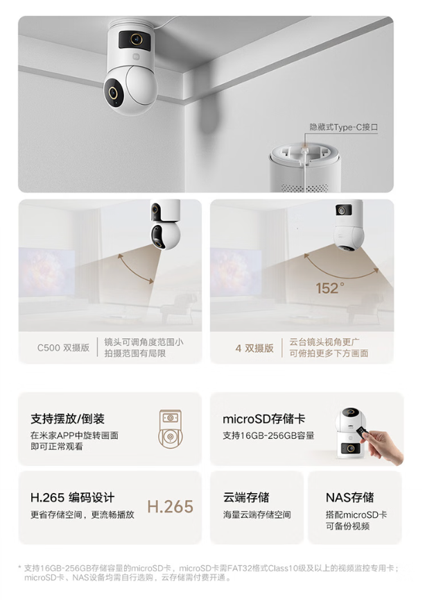 小米智能摄像机4双摄版上市:双镜头500万像素,299元一机两用