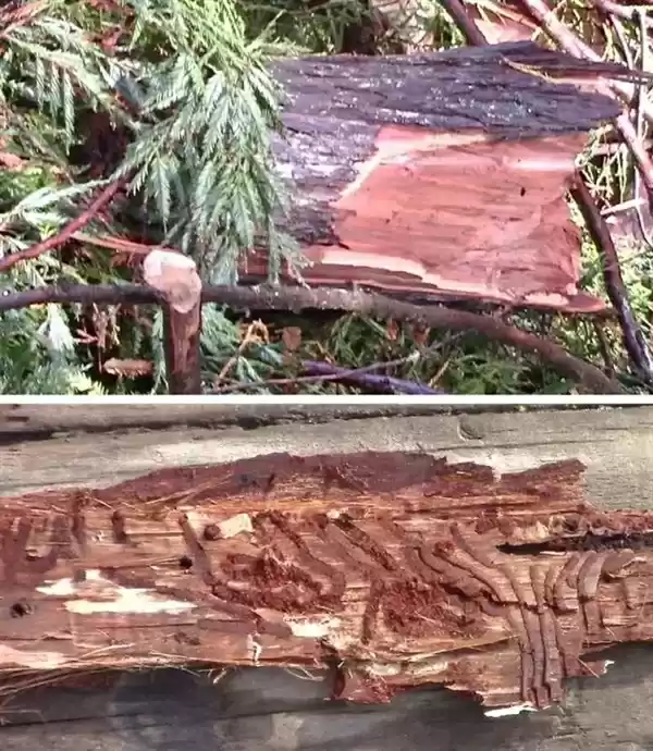 不过,越是接近树冠,海岸红杉的树皮就变得越稀薄,所以树冠处还是会被昆虫破坏的,但这并不致命,真正致命的还是白蚁,一些白蚁依然会由下而上啃食海岸红杉,不管他们树皮有多厚。